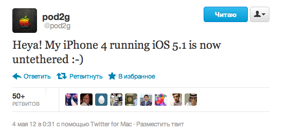 Хэй! Мой iPhone 4 на iOS 5.1 теперь отвязан :-)