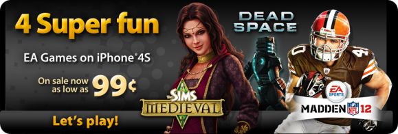 Распродажа от Elelectronic Arts, приуроченная к выходу iPhone 4S.Стоит отметить, что все игры стоят по $0.99, так что если кто не успел что-то прикупить, то сейчас cамое время сделать это.