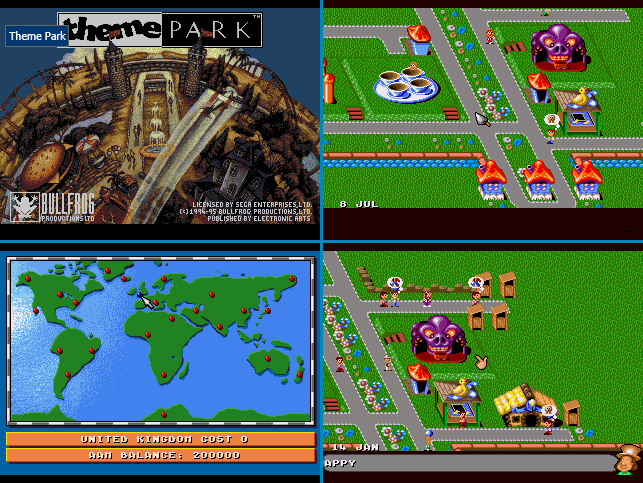 Theme Park была игрой моего детства. В нее можно было играть целыми часами на приставке Sega, которая была в то время сверх популярной. Ведь чтобы построить парк только лишь в одном городе необходимо убить немало времени, не один час. Лично я игру запомнил вот с такой графикой, которая сейчас уже кажется смешной, но в свое время была прекрасной.