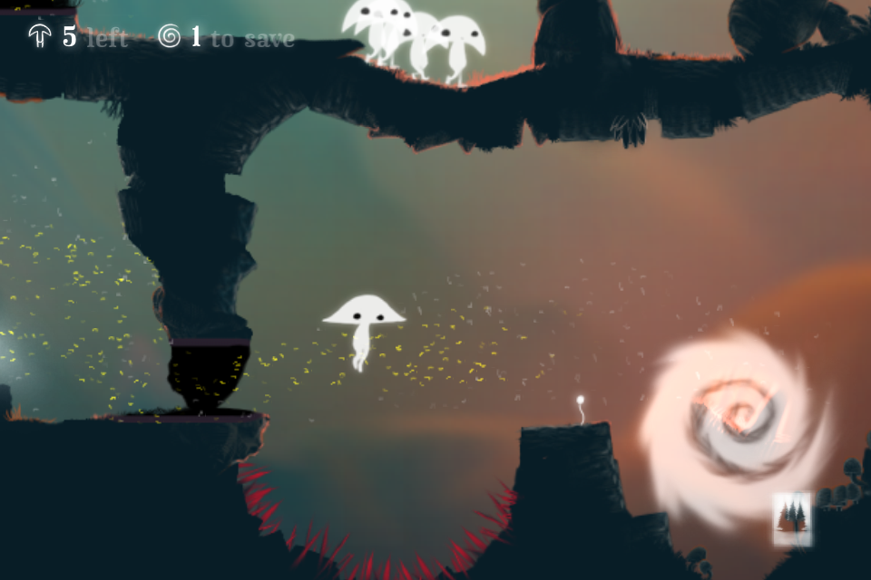 В Spirits 43 уровня, в каждом из которых нам предстоит сопроводить духов к месту назначения, чтобы перейти на следующий этап. По мере прохождения игры у духов появляются новые способности. С их помощью можно рыть туннели, строить мосты из листьев и управлять ветром.