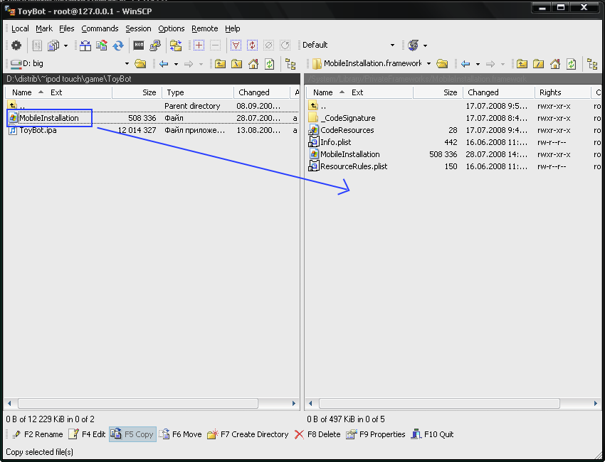 Откроется файловый браузер, через который мы можем копировать с плеера и на него любые файлы. На скриншоте я показал копирование MobileInstallation для возможности запуска ломанных игр ;)