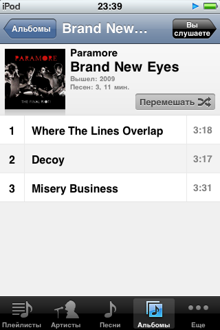 В приложении музыка теперь можно создавать плейлисты и называть их как захочется, а так, же редактировать, т.е менять местами композиции. Немного изменен дизайн при открытии альбома. Теперь мы сможем увидеть обложку, имя исполнителя или группы, название альбома, в каком году он вышел, сколько содержит в себе композиций и сколько часов займет полное прослушивание всех песен, а так же кнопку перемешать.