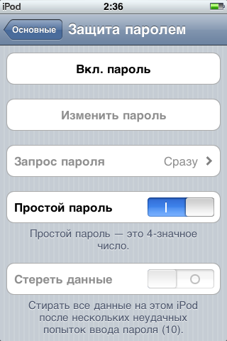 Если вы хотите, чтобы в ваш плеер не лазили чересчур «любопытные» вы сможете поставить не простой пароль из 4 цифр, но теперь и из букв.