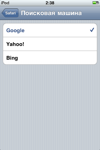 В разделе Safari можно выбрать один из трех поисковиков, это : Google, Yahoo, Bing и сделать его основным.