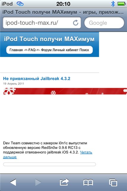 Но вот добрый дядя Стив в прошивке 4.3.х сделал такую возможность официально. С одной стороны это хорошо, но с другой стороны владельцы iPod Touch первого и второго поколений остались без этой возможности. Что можно сказать? Прогресс идет, и именно такими простыми уловками компания подталкивает к апгрейду своей техники. Пожелаю владельцам всех устаревших поколений обновиться на новые устройства, а сам пока продолжу повествование.